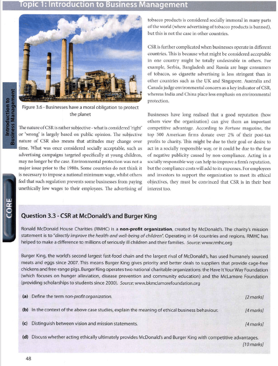 - The book introduces CSR as a conscientious consideration of ethical and environmental practices in business. Educators can use real-world examples, such as McDonald’s litter patrols and Lenovo’s pre-tax income donations, to explain the practical implications of CSR.