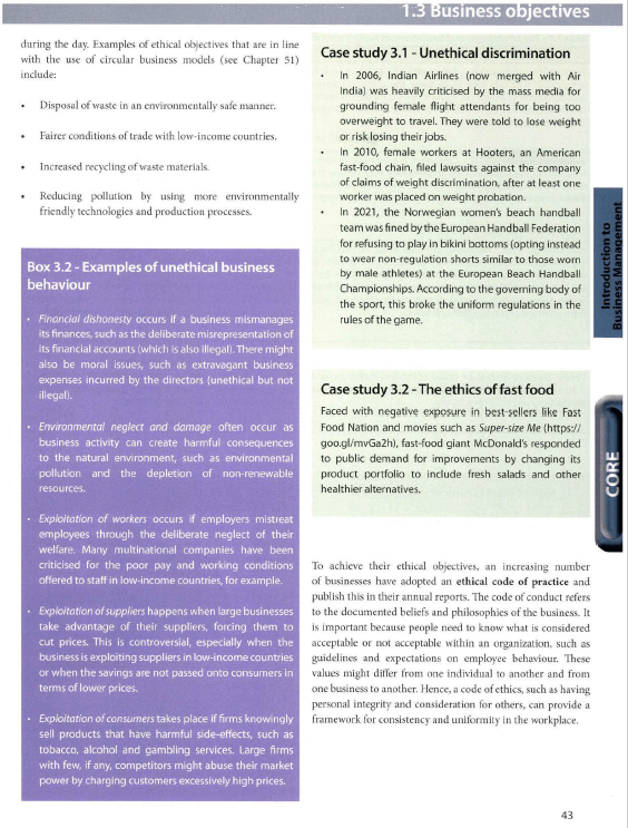 2. Business Ethics and Ethical Objectives – Pages 43-44