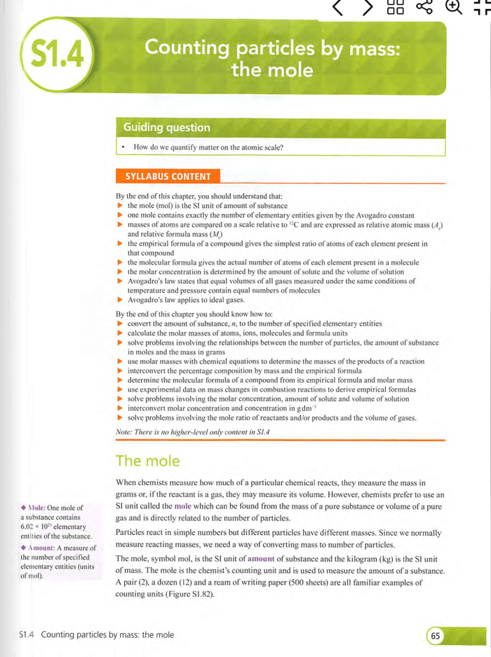 Example 4: Stoichiometry and Mole Concept (Page 65, Section S1.4)