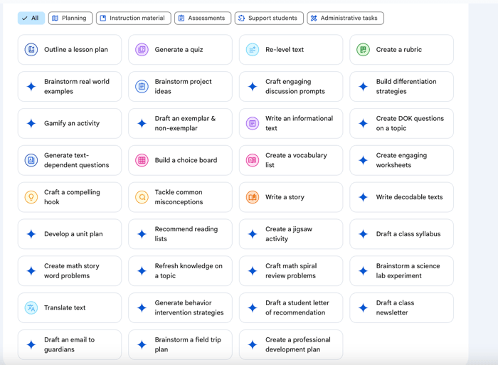 Figure 2: Google AI Tools for Education interface showing a selection of available AI tools