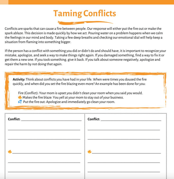 👉 Example: Page 36 introduces "Out of Control," an activity where students practice identifying triggers and applying coping strategies to stay calm and focused in challenging situations.