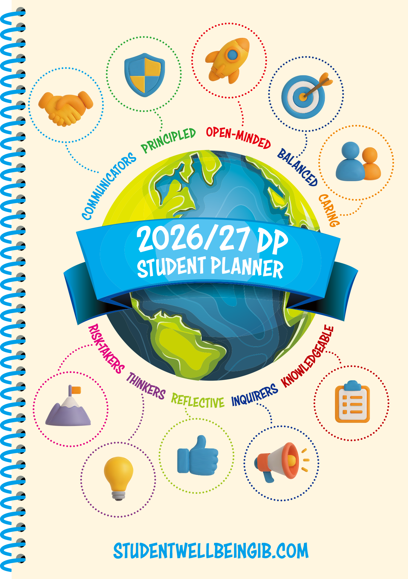 Designed specifically for IB Diploma Programme (DP) students, this 2026 IB Diploma Student Planner supports success by integrating wellbeing, motivation, and academic strategies into daily routines. Each week, students will engage with key Approaches to Learning (ATL) skills alongside structured reflection and goal-setting tools.